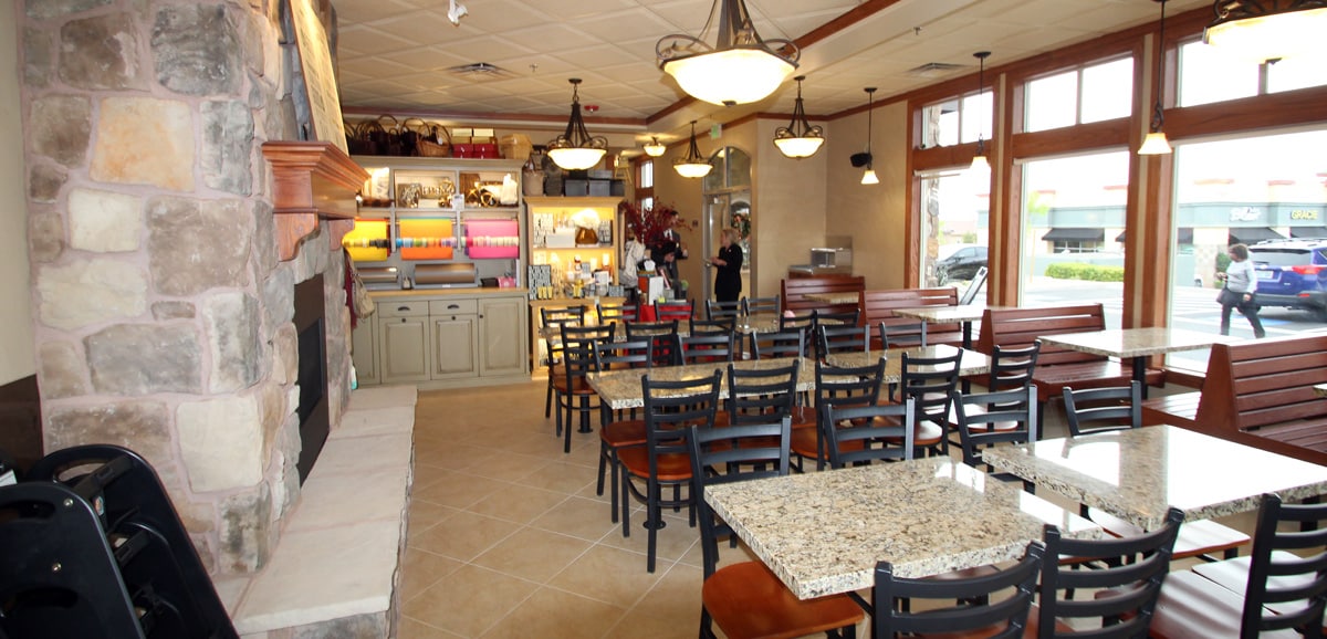 The remained of the space provides a space for the dining room and service counter. This includes a retail space that offers gift baskets and a large display case to features all of their mouth watering pastries and breads.